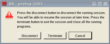 Dialog za končanje seje lahko prikličemo tudi s tipkami Ctrl + Alt + T, kar je priročno ob celozaslonskem (Full Screen Ctrl + Alt + F [samo Linux] ) načinu povezave. Potrebno je še omeniti, da je privzeta nastavitev KDE, da obnovi prejšnjo sejo (Start -> Nadzorno središče -> Komponente KDE → Upravitelj sej -> Ob prijavi: Obnovi prejšnjo sejo). Pri izboru  "Terminate" se seja na shrani. Seja se shrani le če izberemo Start->Odjava. Na ta način imamo lahko shranjeno zadnjo sejo. Če jo ne želimo shraniti enostavno pritisnemo Ctrl + Alt + T in izberemo "Terminate". Obnovitev seje po "Disconnect" torej pomeni, da se bodo programi ob novi prijavi ponovno zagnali na namizju prav tam, kjer so bili ko smo se odjavili. Obnovitev pomeni le zagon na zadnjem mestu.  Terminalska okna obnovijo le položaj ne pa tudi vsebine. Brskalnik firefox pa obnovi tudi vsebino. Na splošno pa podpirajo obnovitev sej vsi programi KDE in nekatere namizne aplikacije.