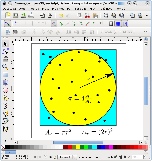 Uporabimo inkscape in narišimo problem s tem, da ga poženemo na poljubnem vozlišču