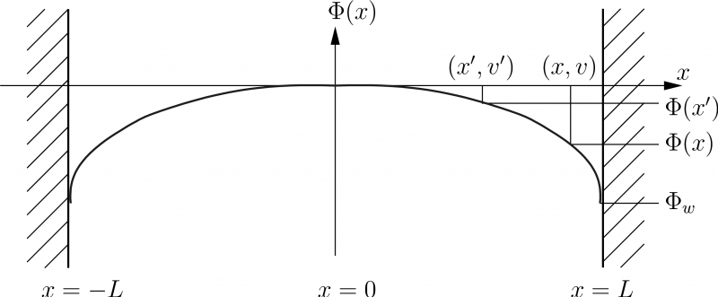 v katerem je neznana funkcija v in izven integrala. Ta integro-diferencialna enačba se lahko šteje kot posplošitev enačb Fredholmovega tipa, ki ni ne prve ne druge vrste, marveč je očitno nelinearna in v literaturi ni klasificirana. Vendar celo v dvodelni aproksimaciji končne porazdelitve ionov ni bilo moč izračunati za poljubno temperaturo vira ionov, saj je bilo singularno jedro integralne enačbe neprimerno za numerične izračune.