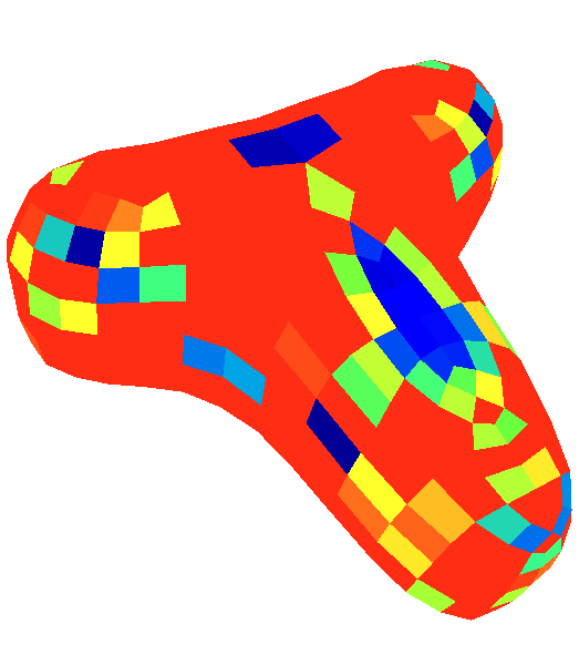 Slika 10: Kompleksnejši štirikotni mrežni model, dobljen z dvojno Catmull-Clark delitvijo začetne mreže.