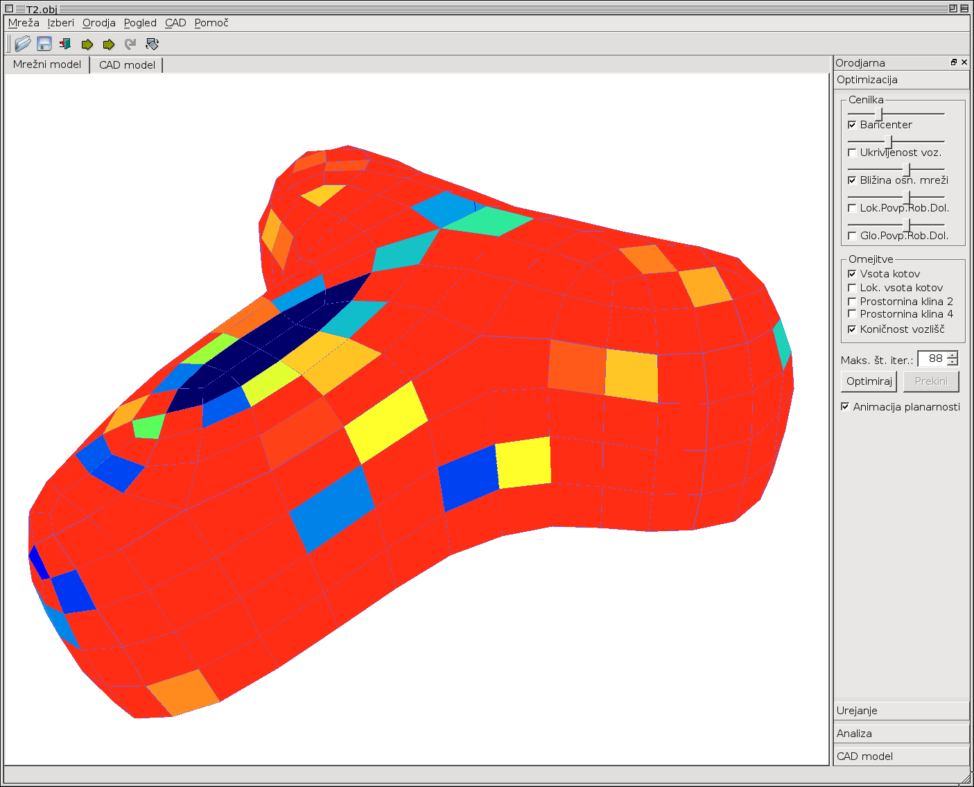 Slika 6: Optimizacijske funkcije programa Tremesh.