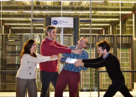 Udeleženci PRACE Summer of HPC 2015 z mentorji na uvodnem tedenskem izobraževanju v Barceloni, Španiji | HPC ambasador leta 2015 Alberto Garcia Garcia na podelitvi v Barceloni, Španiji | Prejemnik nagrade za najboljšo vizualizacijo 2015 Simos Kazantzidis z mentorji na podelitvi v Barceloni, Španiji |